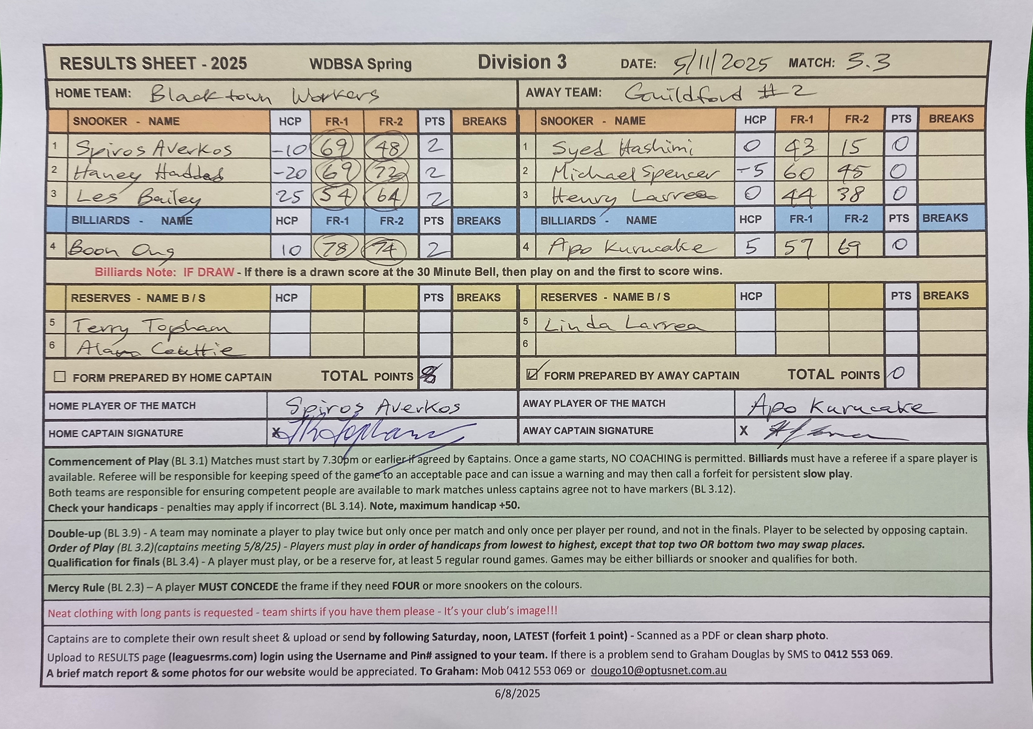 | Haney Haddad (-20) | Michael Spencer (-5) | 2025-11-05 21:49:18 | Div3-Guildford #2 | ||||||||||||||