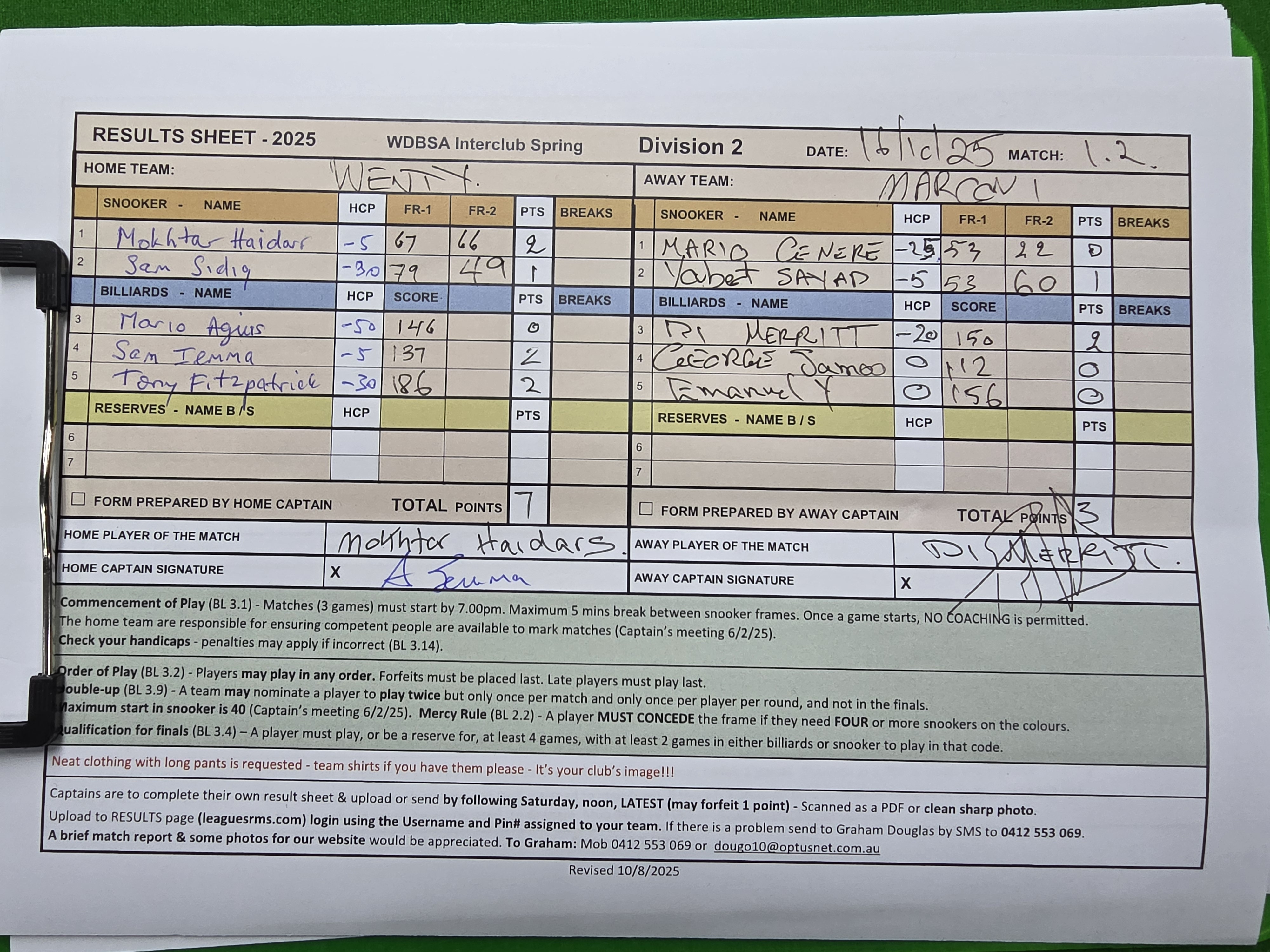 | Mokhtar Haidari (-20) | Mario Cenere (-25) | 2025-10-17 12:04:39 | Div2-Marconi | ||||||||||||||