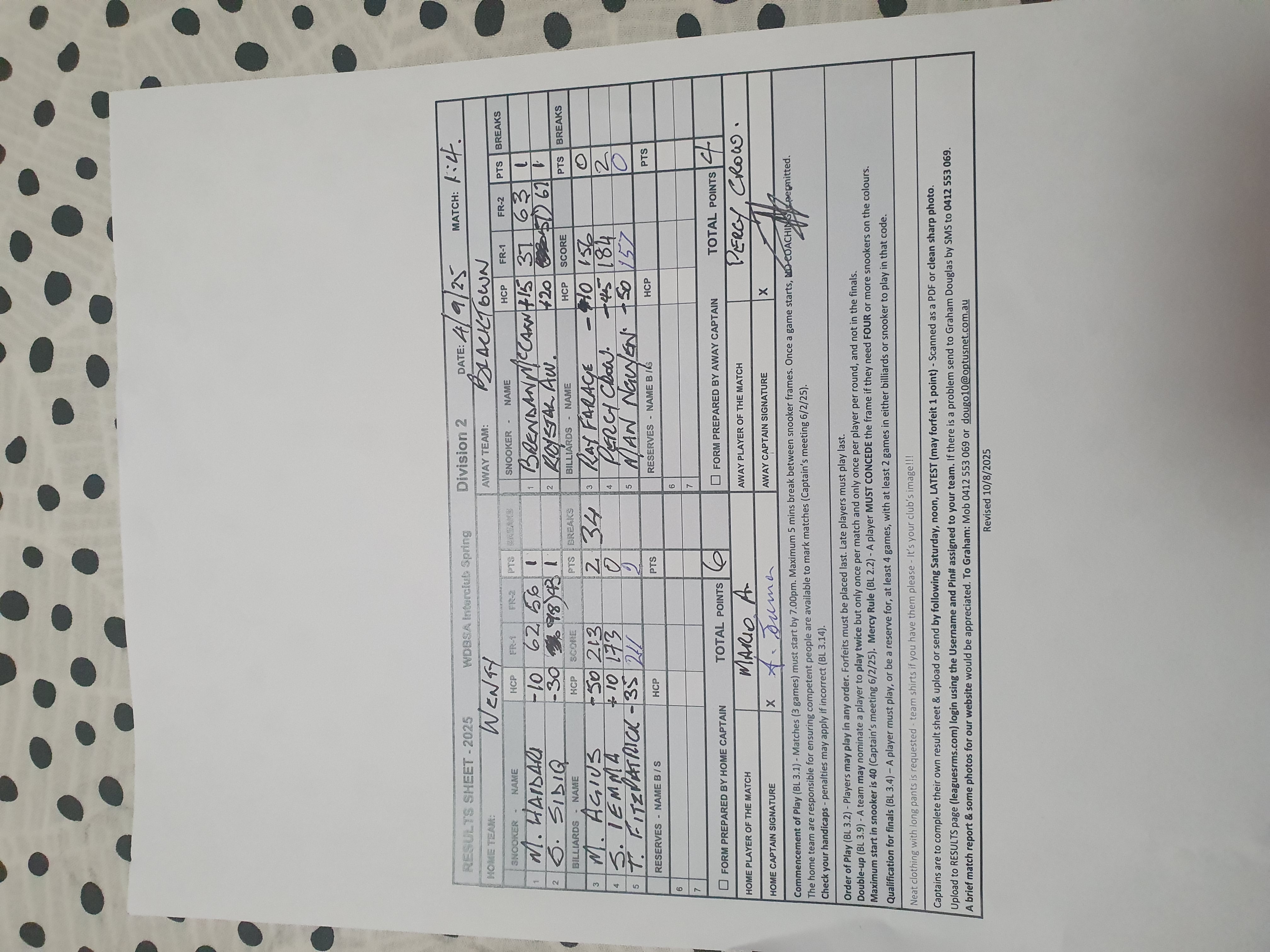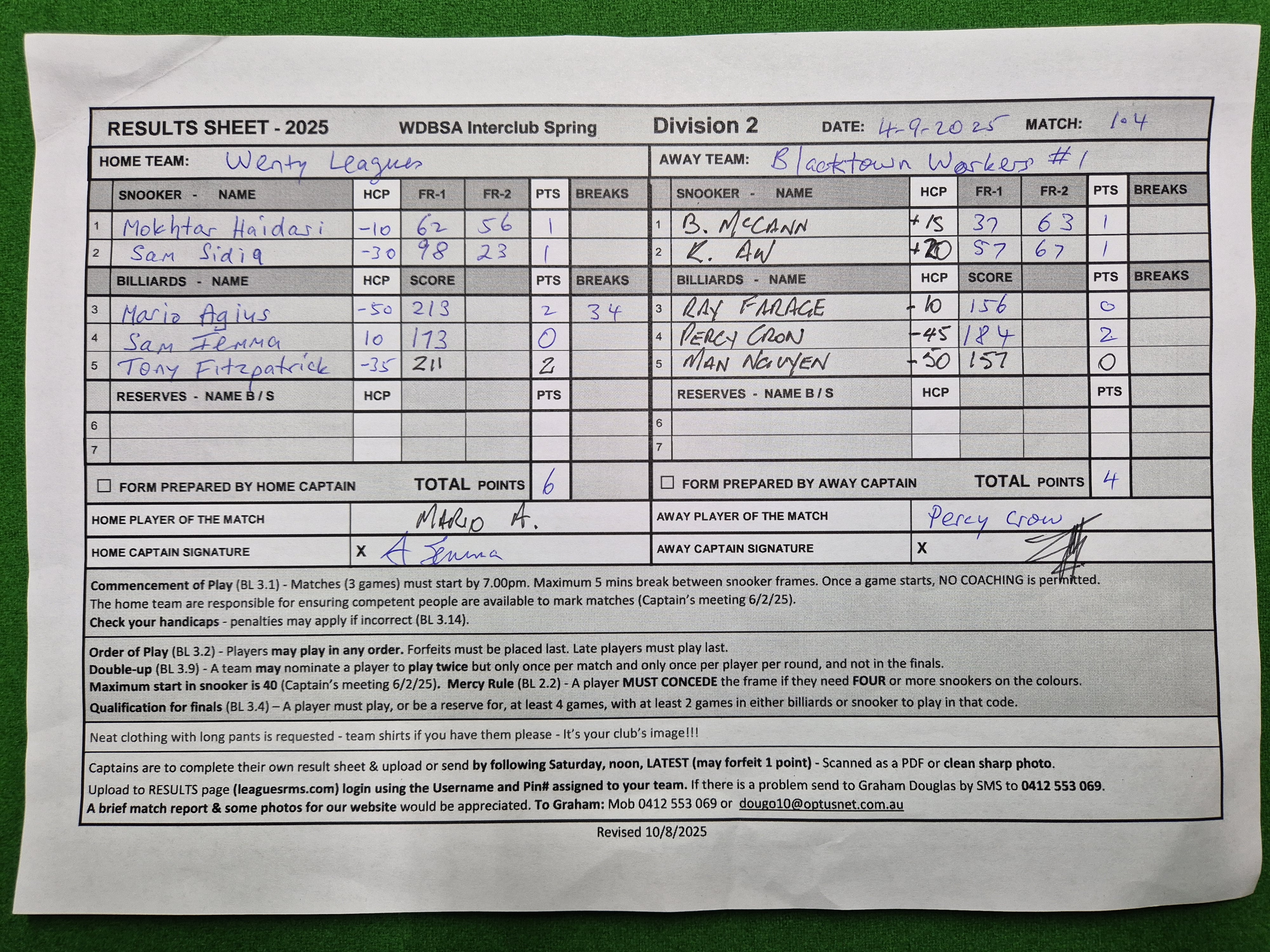 | Sam Iemma (10) | Percy Crow (-45) | 2025-09-08 09:12:47 | Div2-Workers#1 | ||||||||||