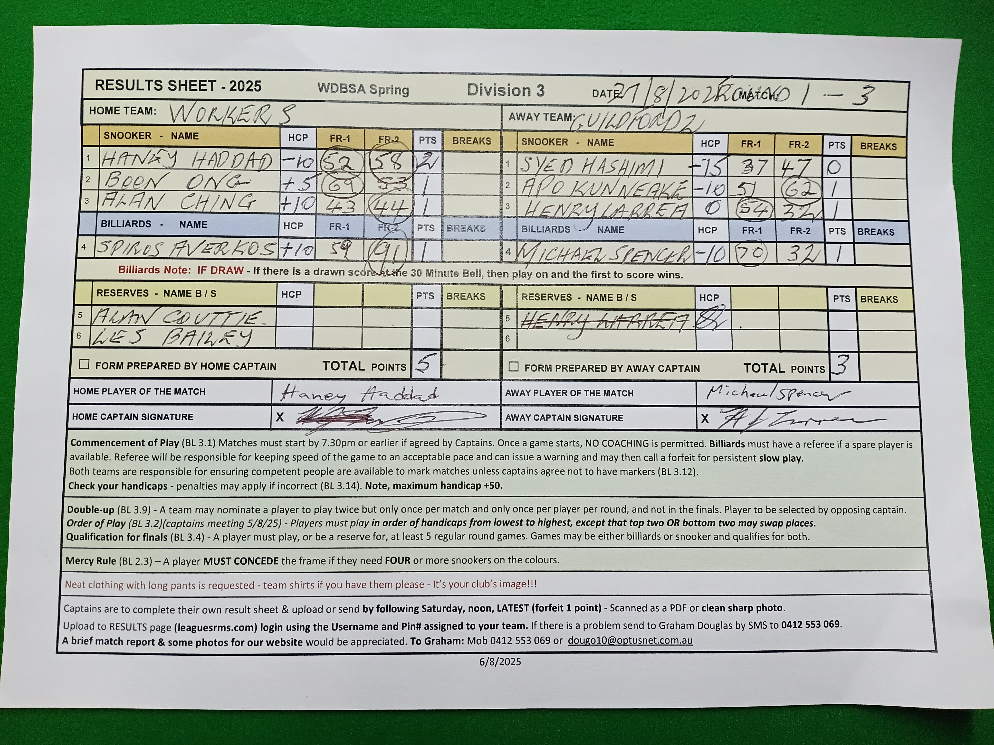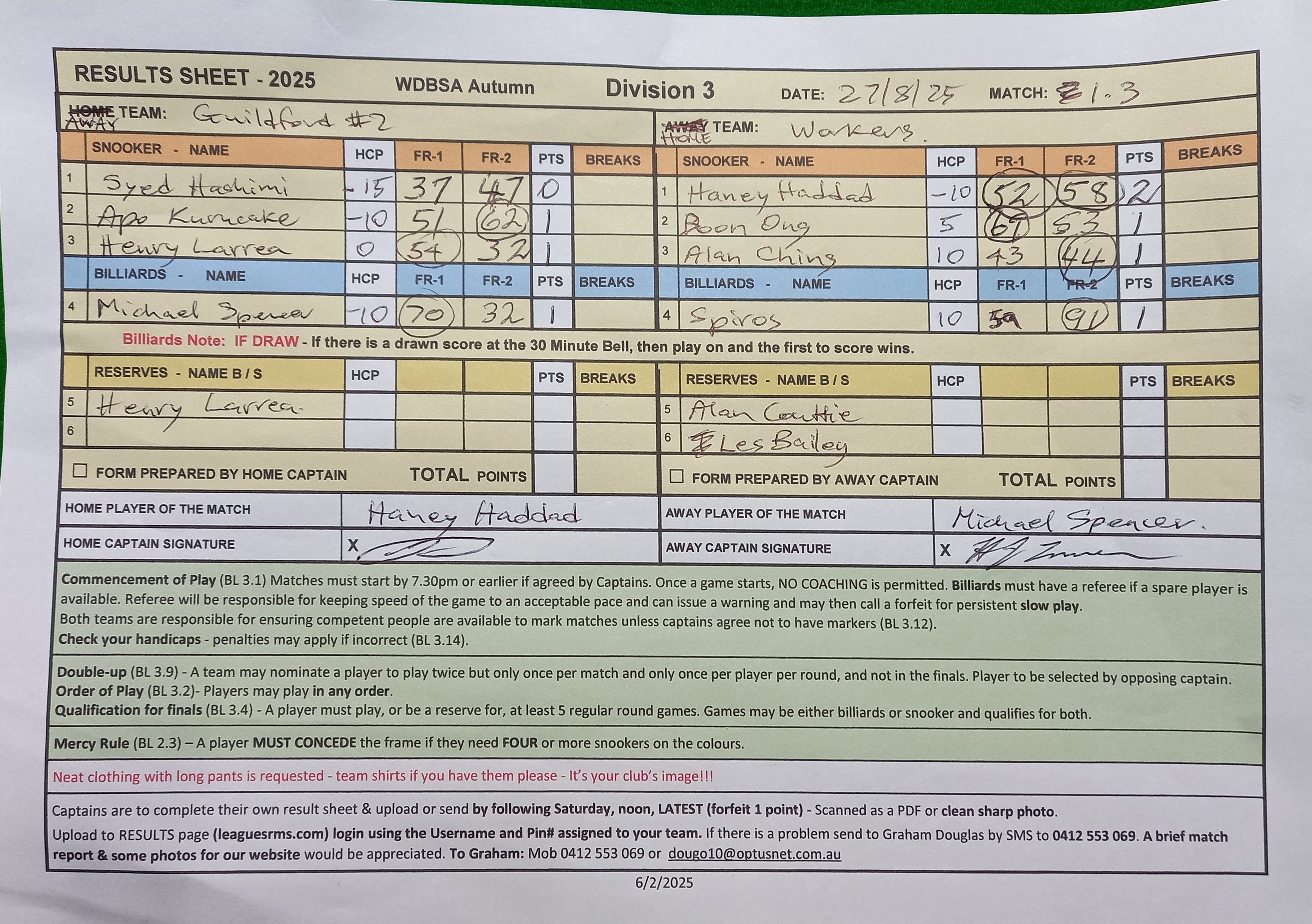 | Alan Ching (10) | Henry Larrea (0) | 2025-08-27 23:16:27 | Div3-Guildford #2 |