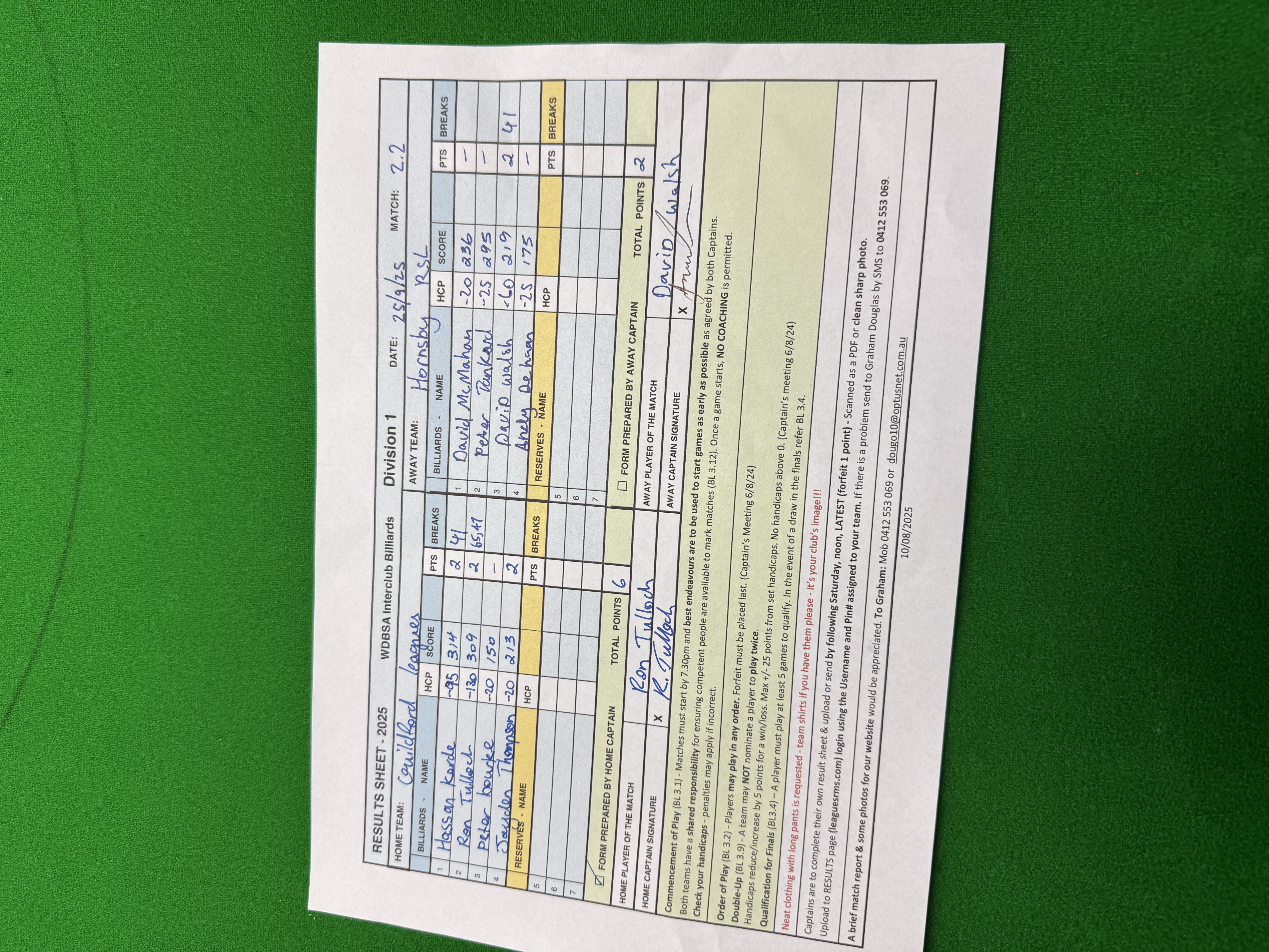 | Peter Bourke (-20) | David Walsh (-60) | 2025-09-25 22:16:14 | Div1-Guildford | ||||||||||