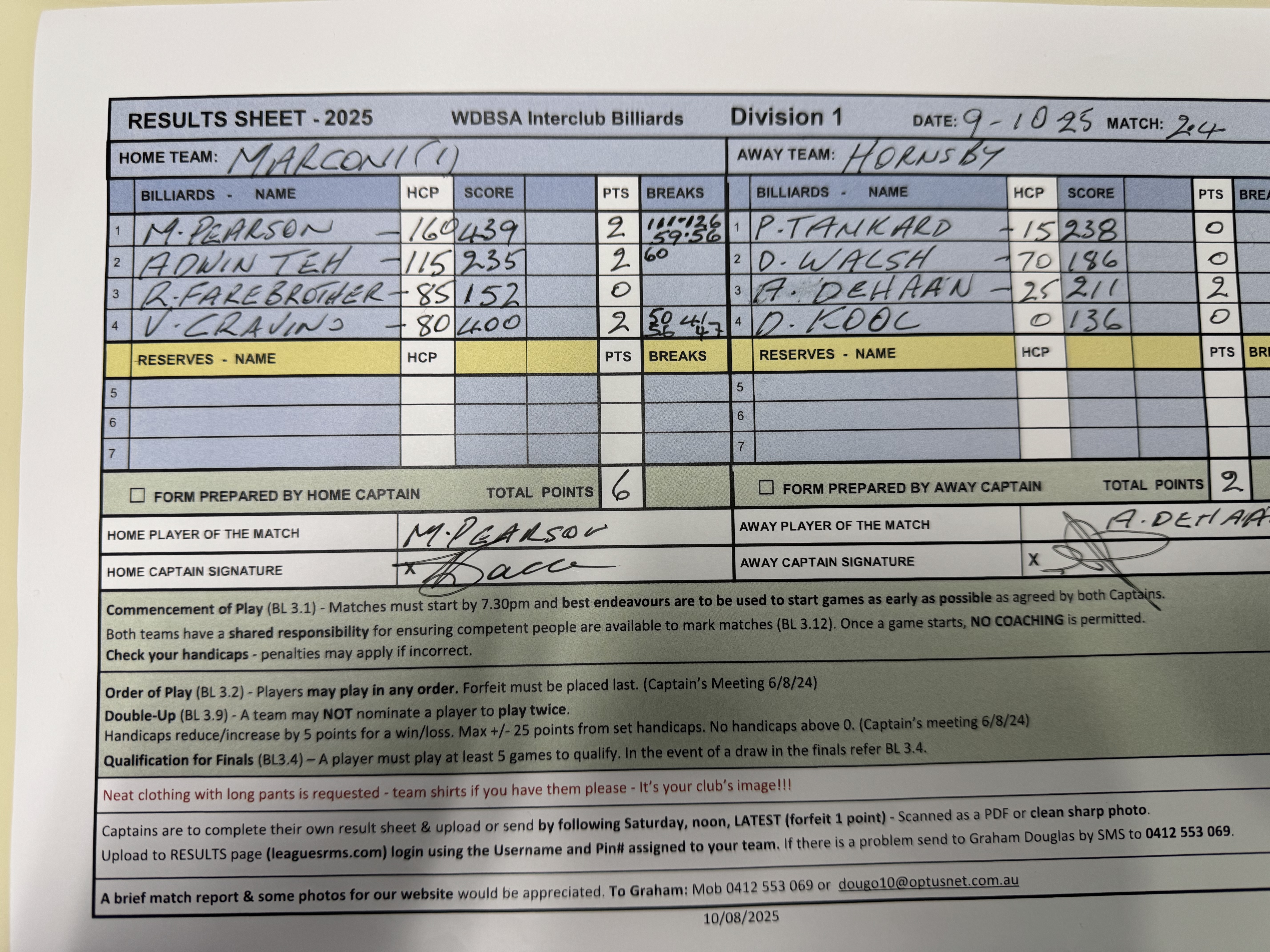 | Michael Pearson (-160) | Peter Tankard (-15) | 2025-10-10 10:17:21 | Div1-Hornsby | ||||||||||