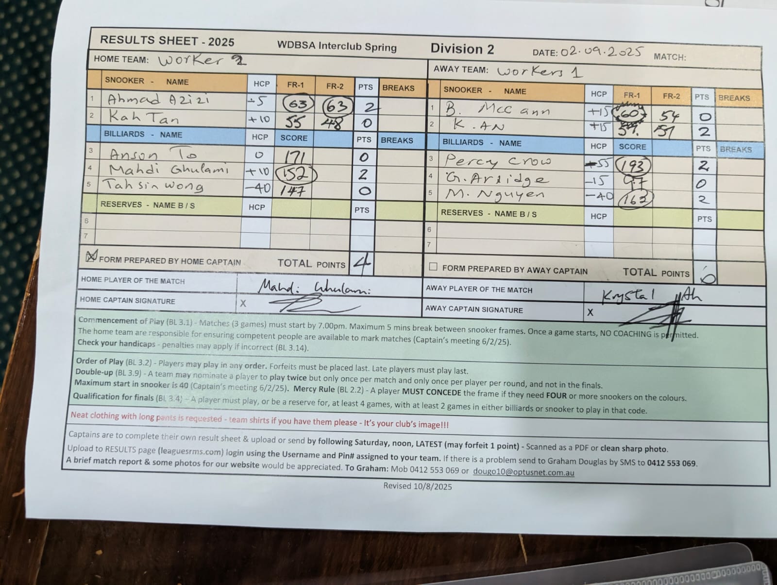 | Mahdi Ghulami (10) | Gary Arlidge (-15) | 2025-10-02 22:45:14 | Div2-Workers#1 | ||||||||||