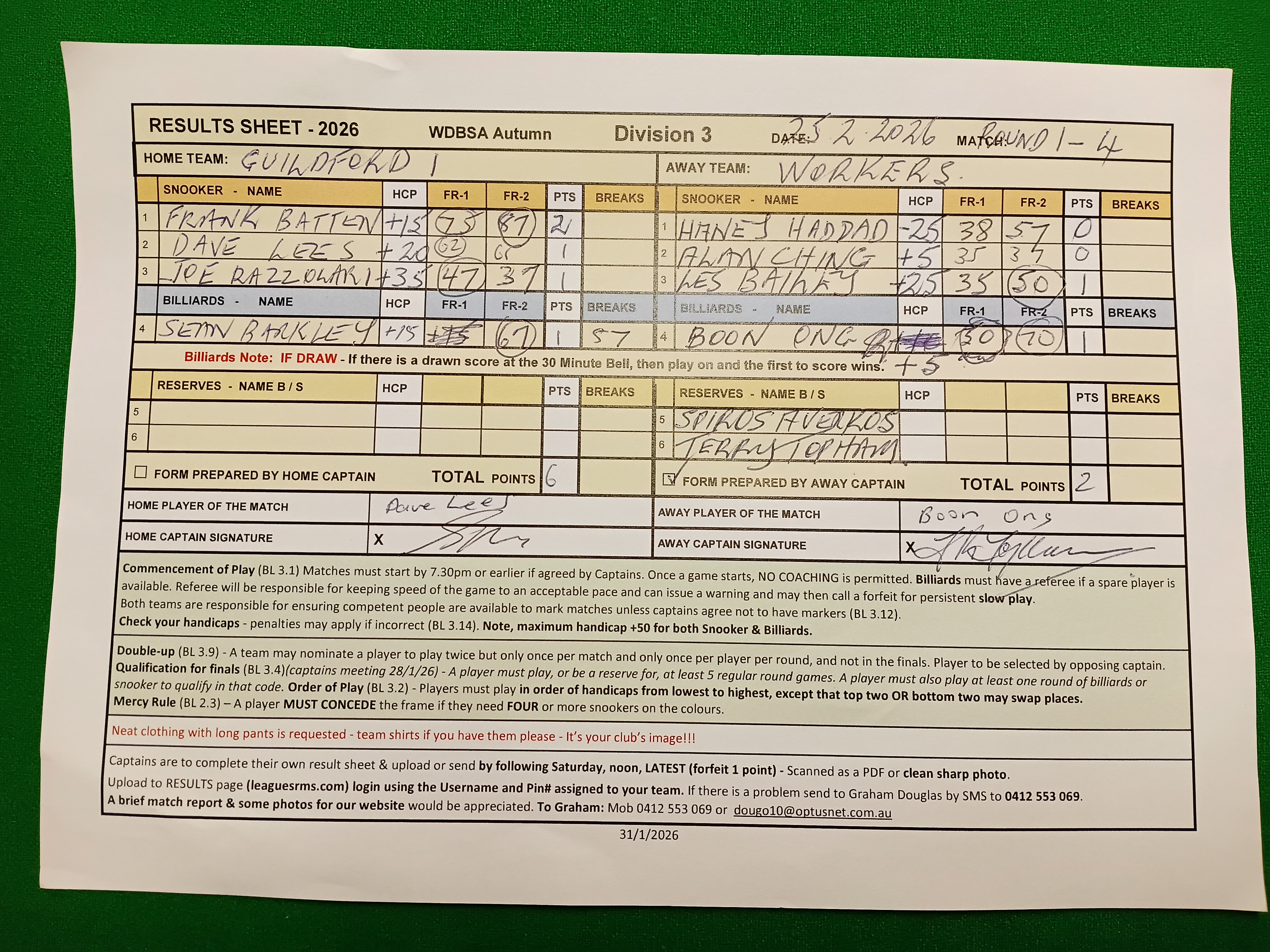 | David Lees (20) | Alan Ching (5) | 2026-02-25 20:51:25 | Workers | ||||||||||||||