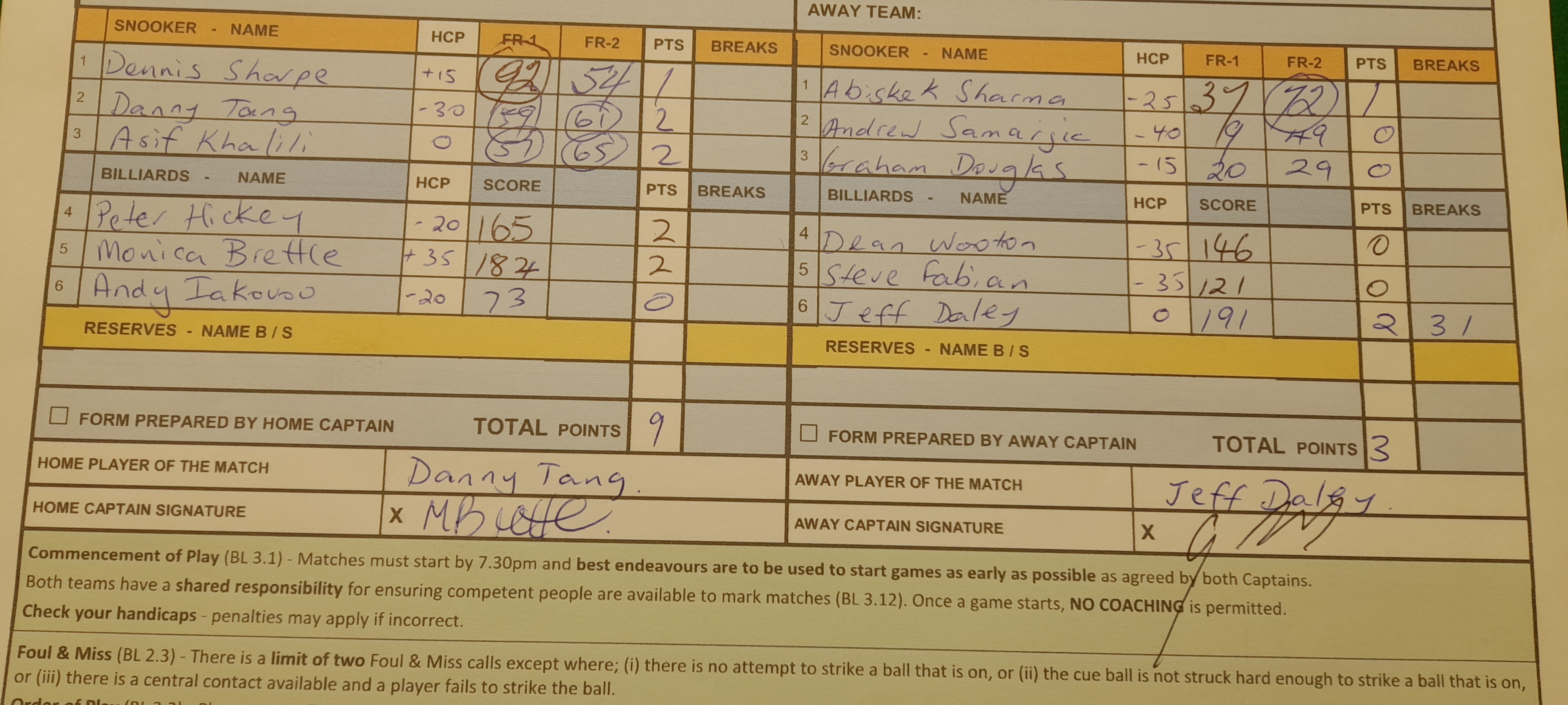 | POS | Guildford | Frame 1 | Net | Frame 2 | Net | PTS | Breaks | Seven Hills | Frame 1 | Net | Frame 2 | Net | PTS | Breaks | Result Note | Updated on | Update by |