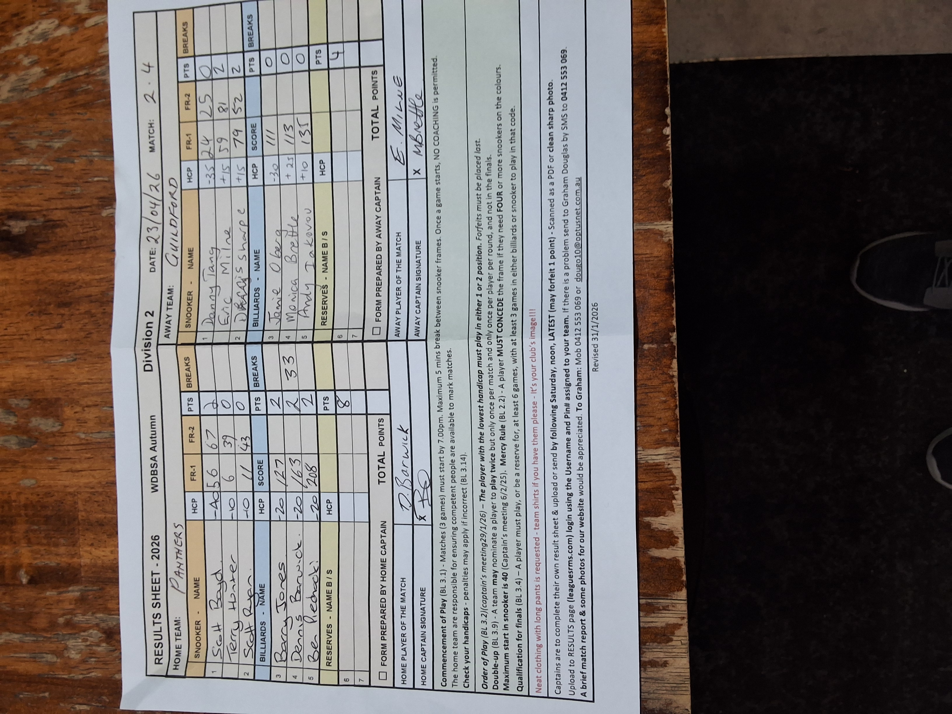 | Scott Boyd (-40) | Danny Tang (-35) | 2026-04-23 22:16:46 | Guildford | ||||||||||||||