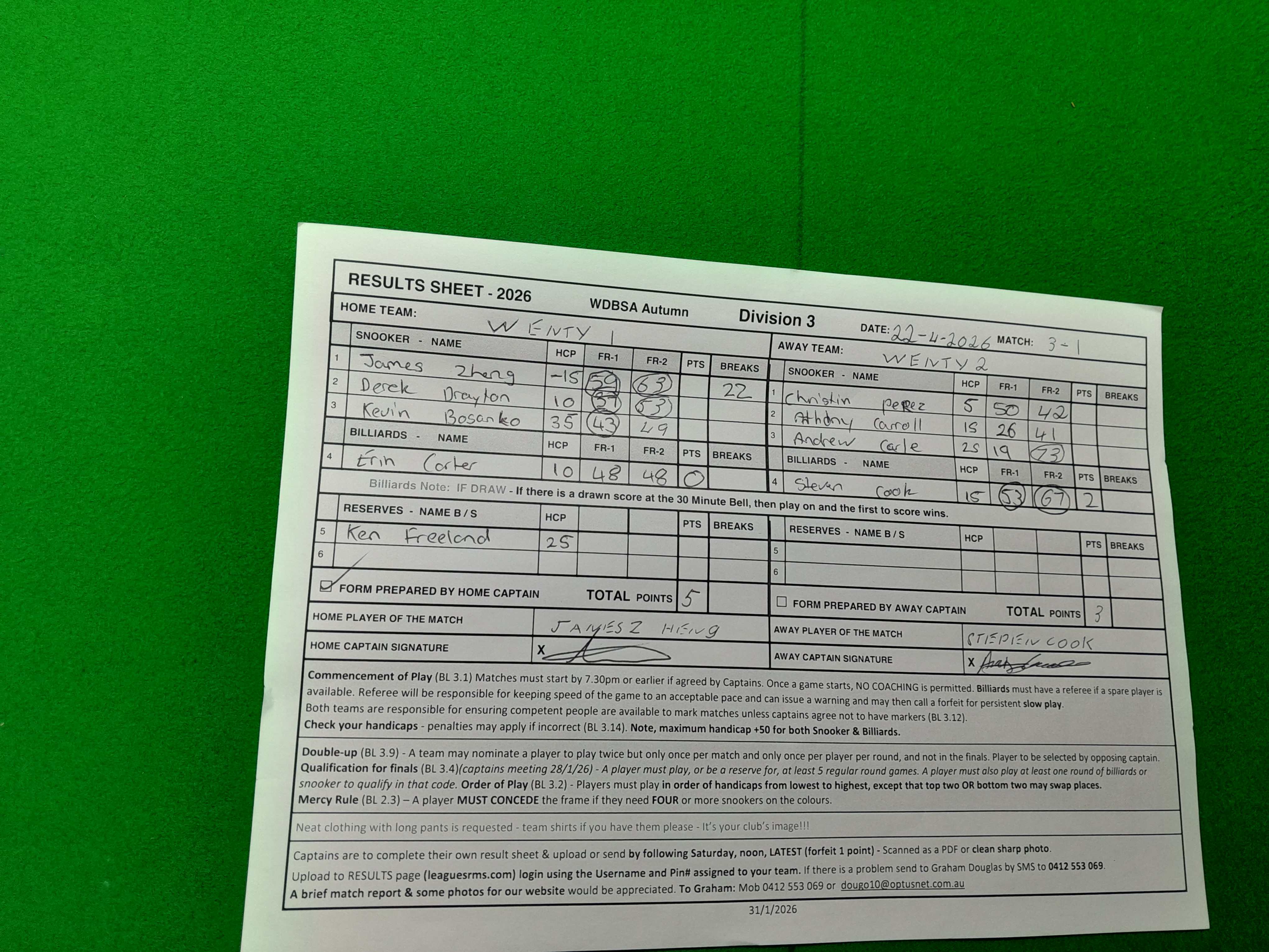 | Erin Carter (10) | Stephen Cook (15) | 2026-04-22 21:14:55 | Wenty #1 |
