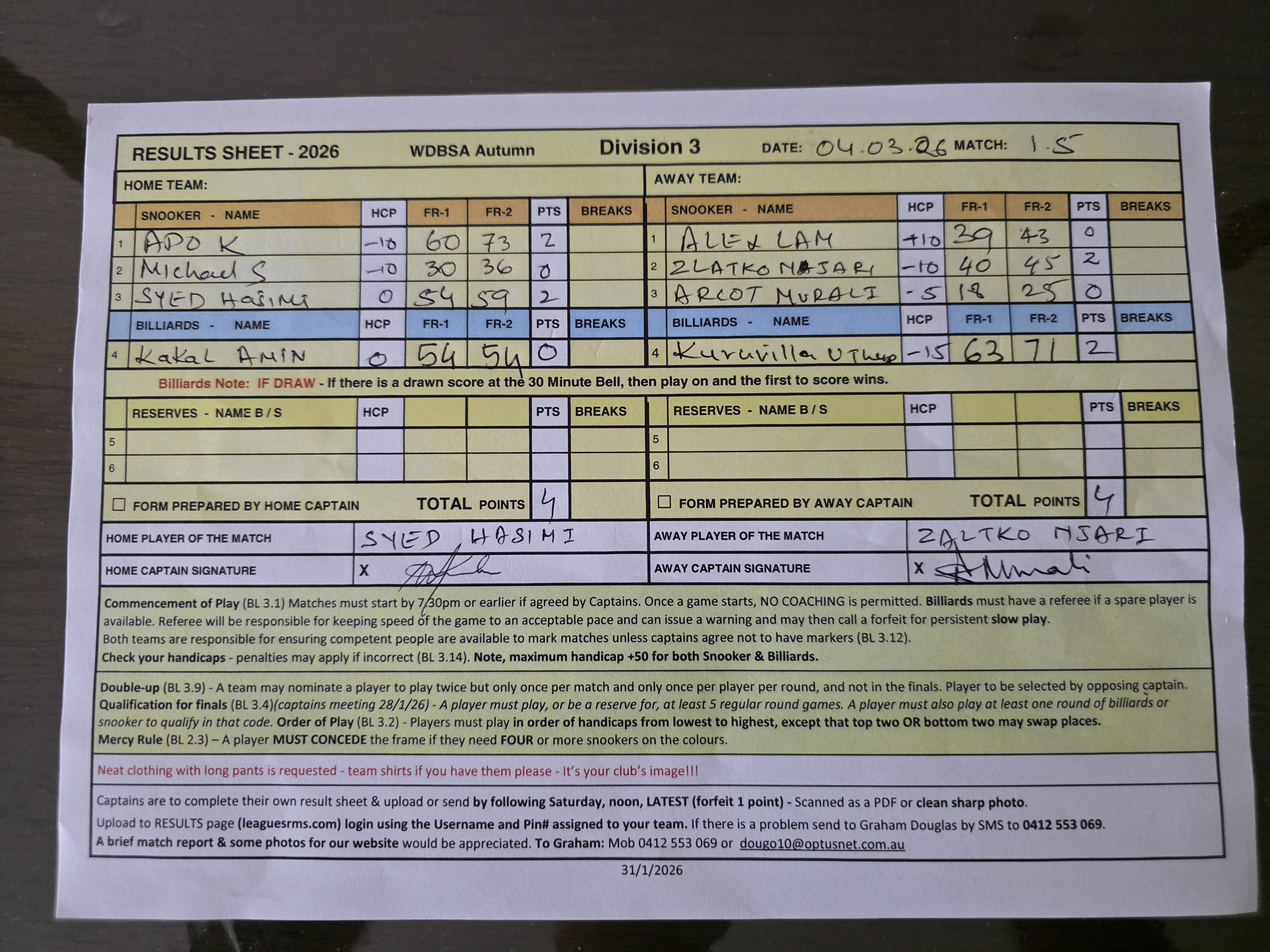 | Syed Hashimi (0) | Arcot Murali (-5) | 2026-03-05 09:41:38 | Seven Hills |