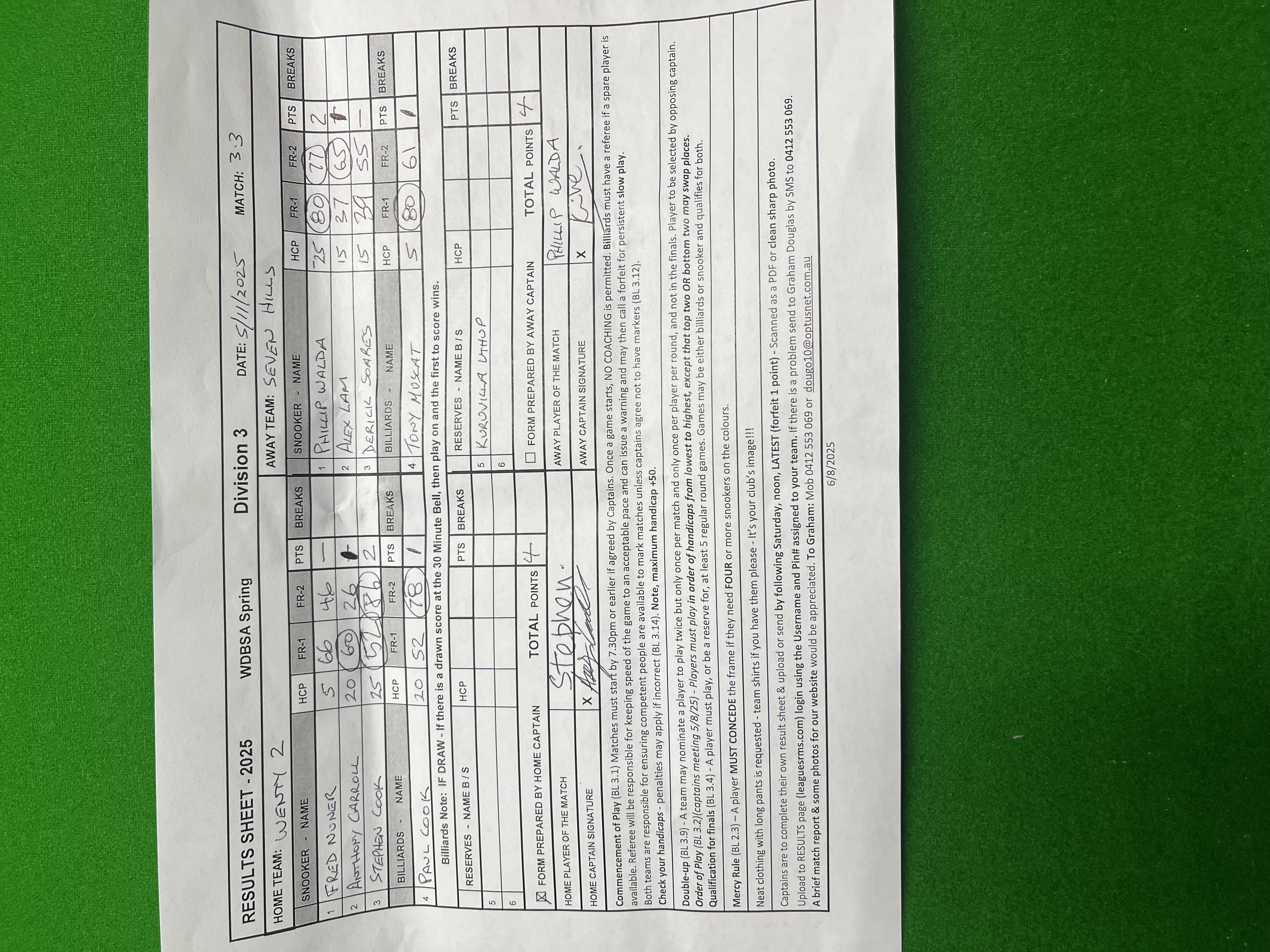 | 4 | Paul Cook (20) | 52 | 37 | 78 | 63 | 1 | | Tony Muscat (5) | 80 | 80 | 61 | 61 | 1 | | | 2025-11-05 20:52:58 | Div3-Wenty 2 |