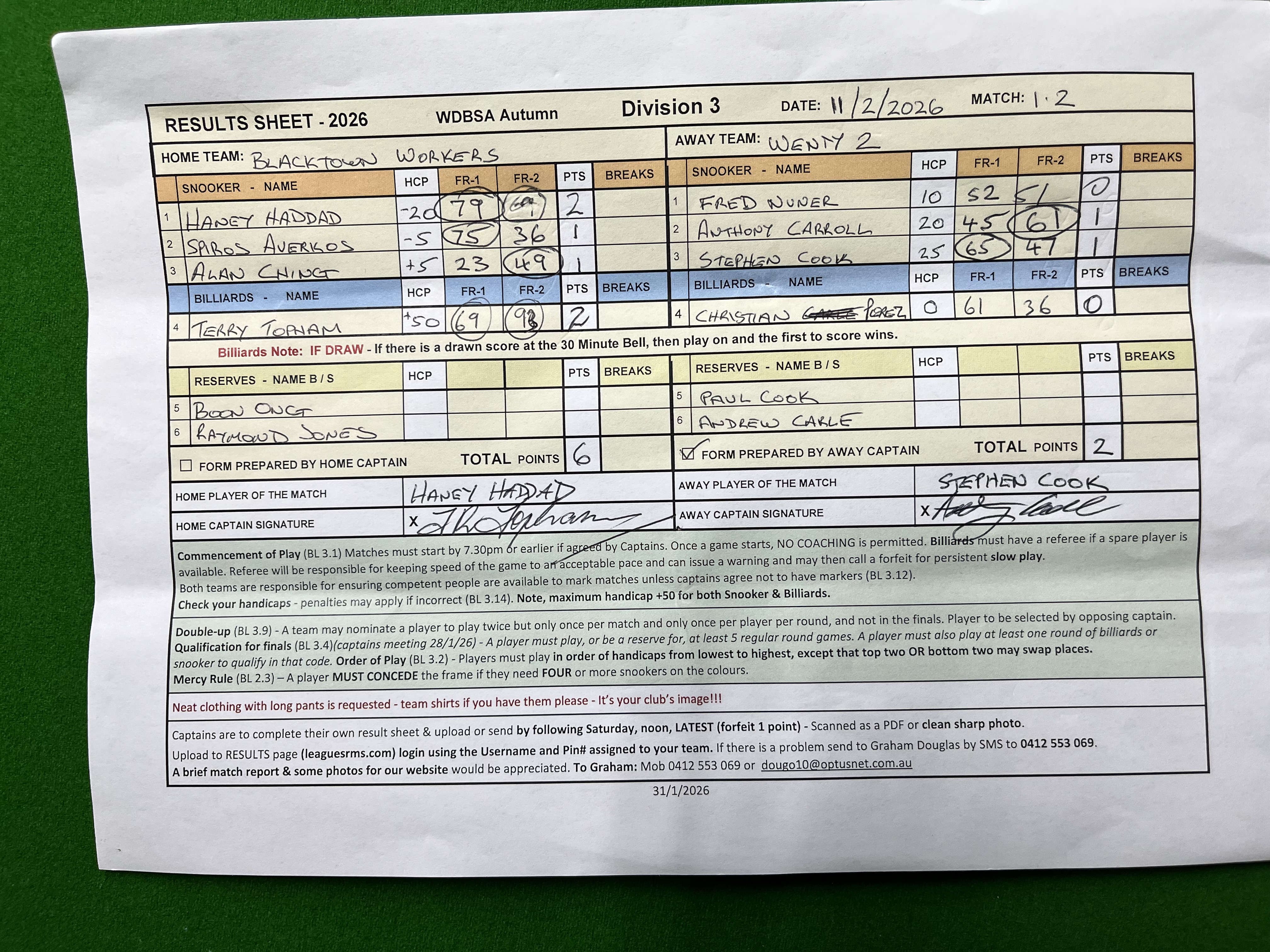 | Alan Ching (5) | Stephen Cook (25) | 2026-02-11 21:50:56 | Wenty #2 |