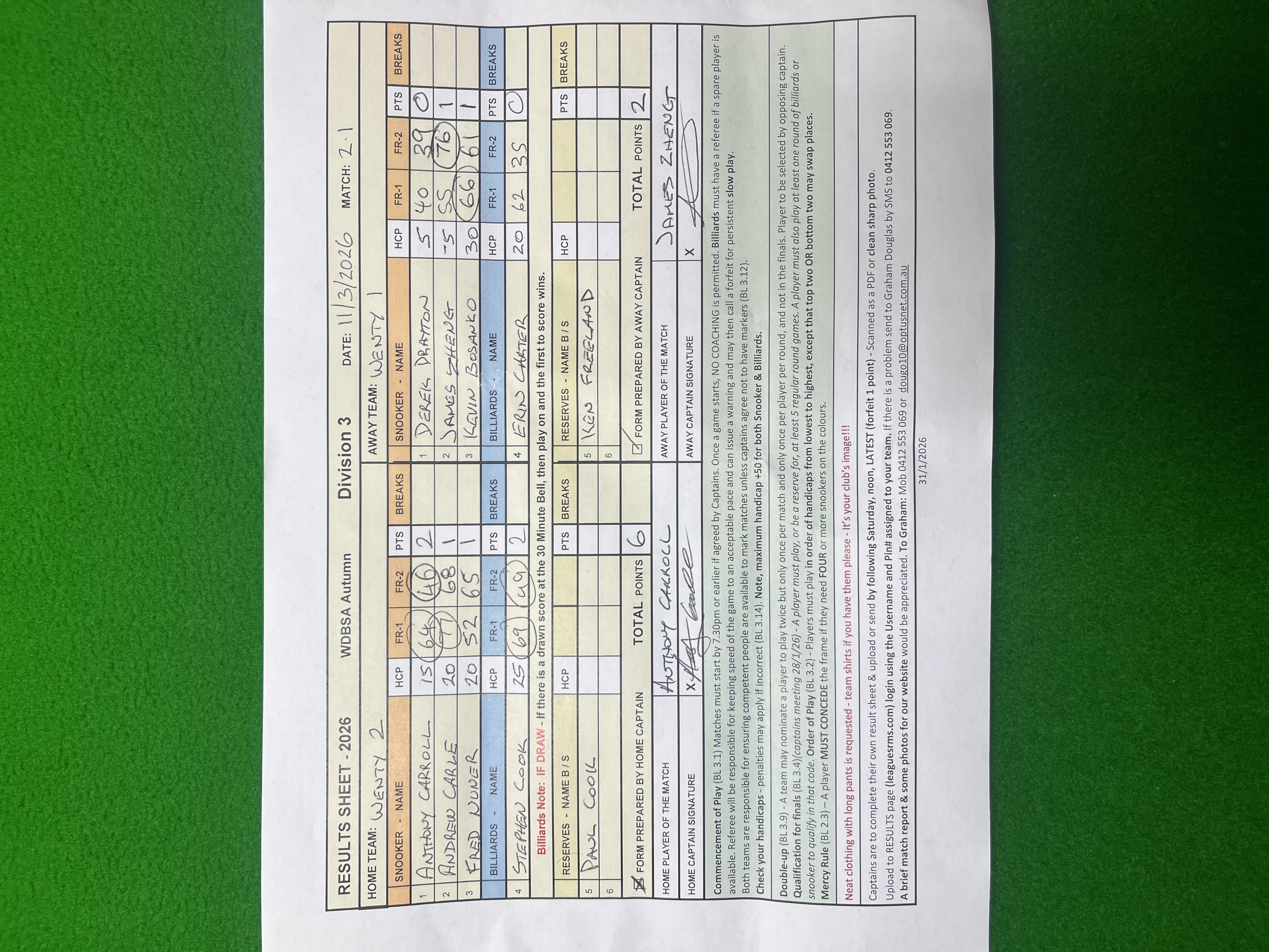 | POS | Wenty #2 | Frame 1 | Net | Frame 2 | Net | PTS | Breaks | Wenty #1 | Frame 1 | Net | Frame 2 | Net | PTS | Breaks | Result Note | Updated on | Update by |