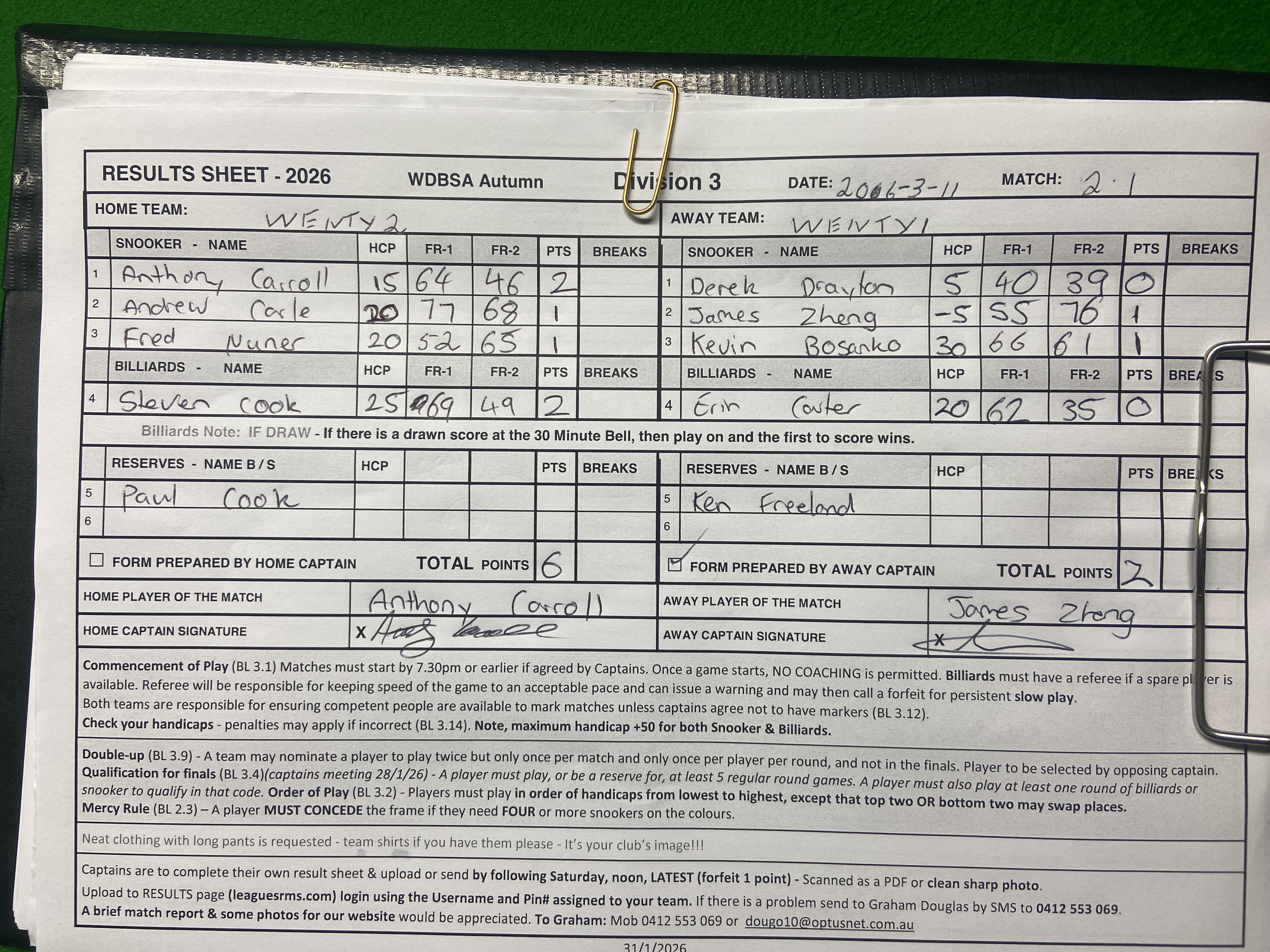 | Anthony Carroll (15) | Derek Drayton (5) | 2026-03-11 21:29:02 | Wenty #1 | ||||||||||||||