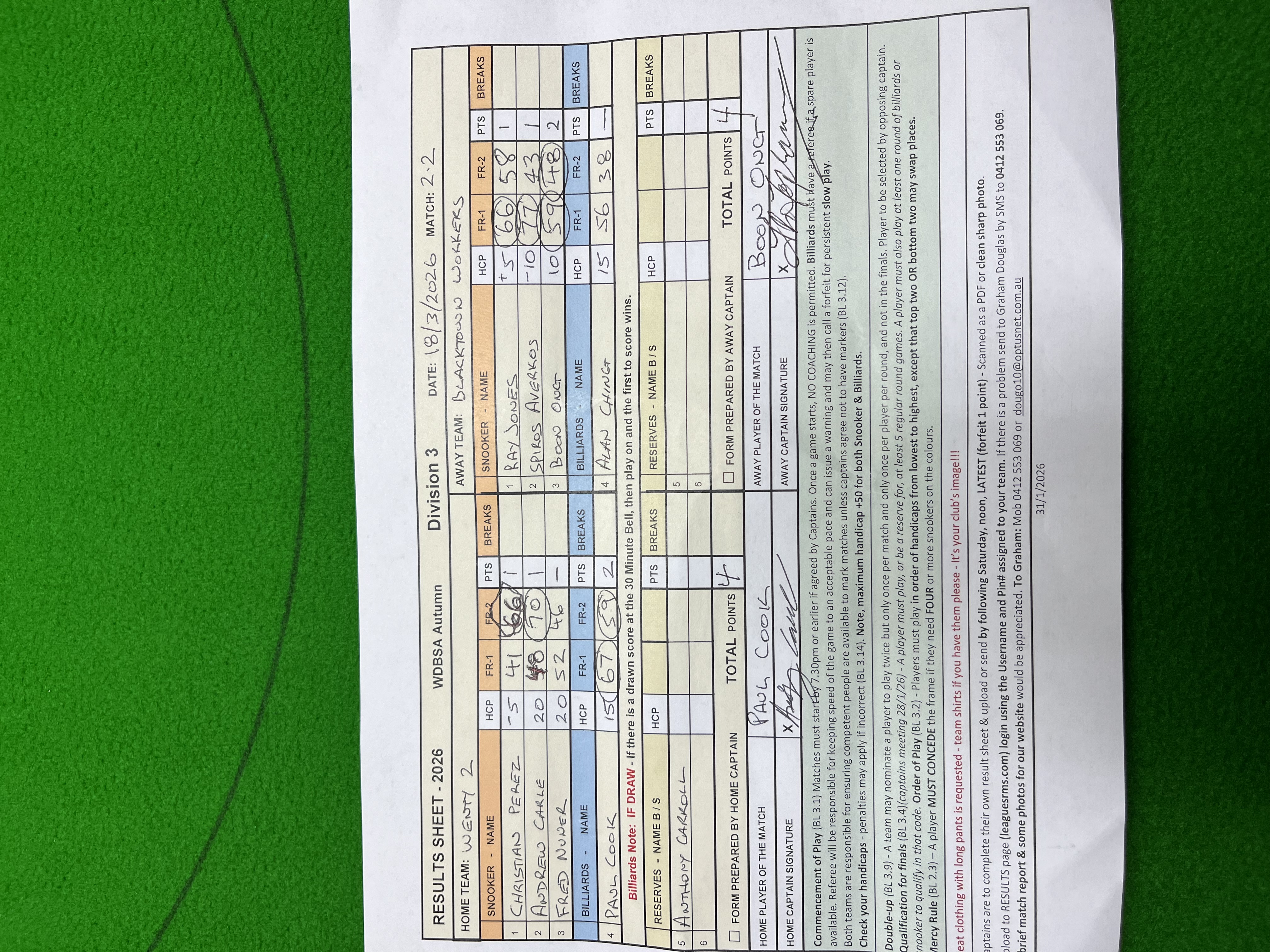 | POS | Wenty #2 | Frame 1 | Net | Frame 2 | Net | PTS | Breaks | Workers | Frame 1 | Net | Frame 2 | Net | PTS | Breaks | Result Note | Updated on | Update by |