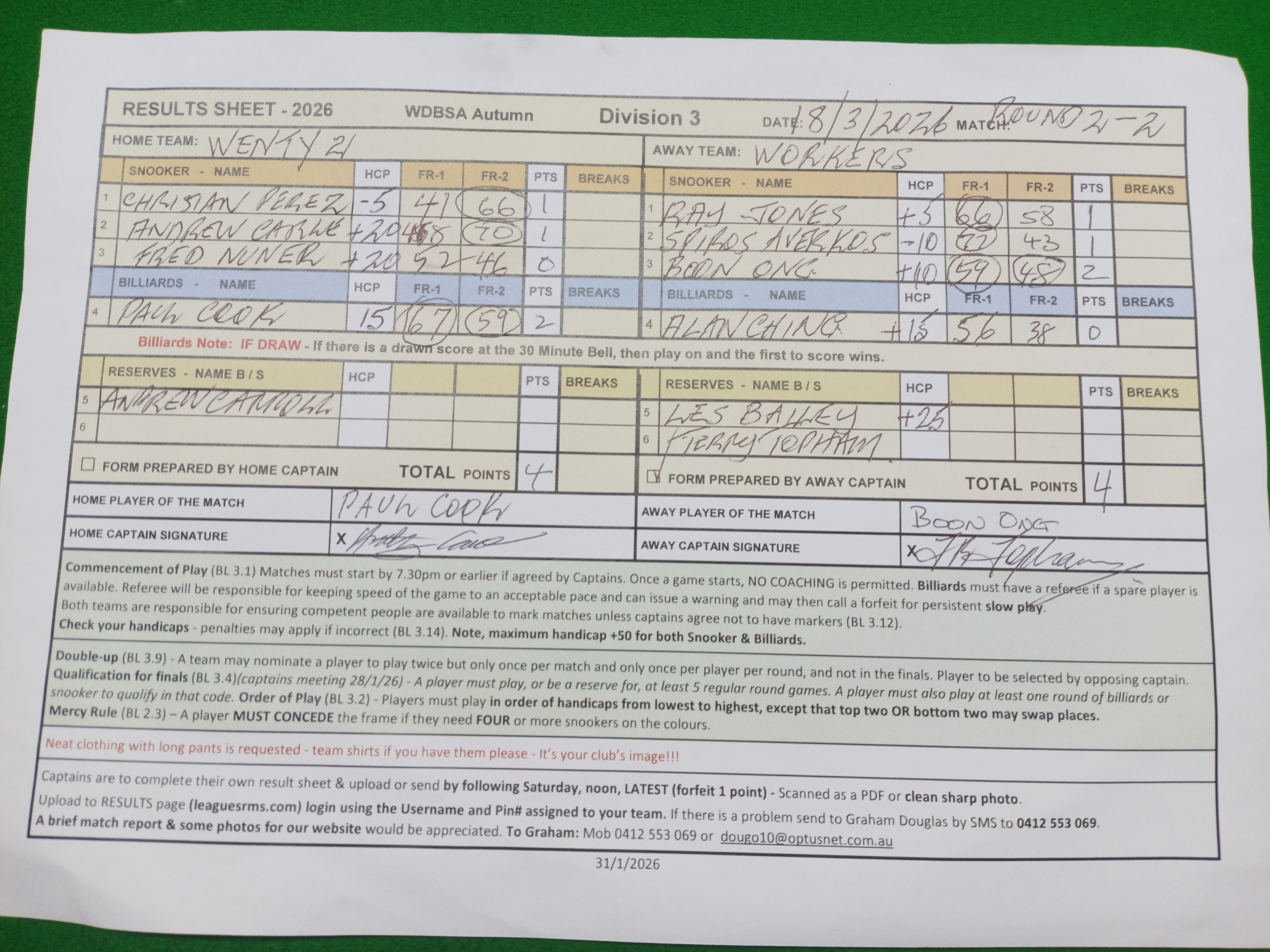 | Paul Cook (15) | Alan Ching (15) | 2026-03-18 20:59:05 | Workers |