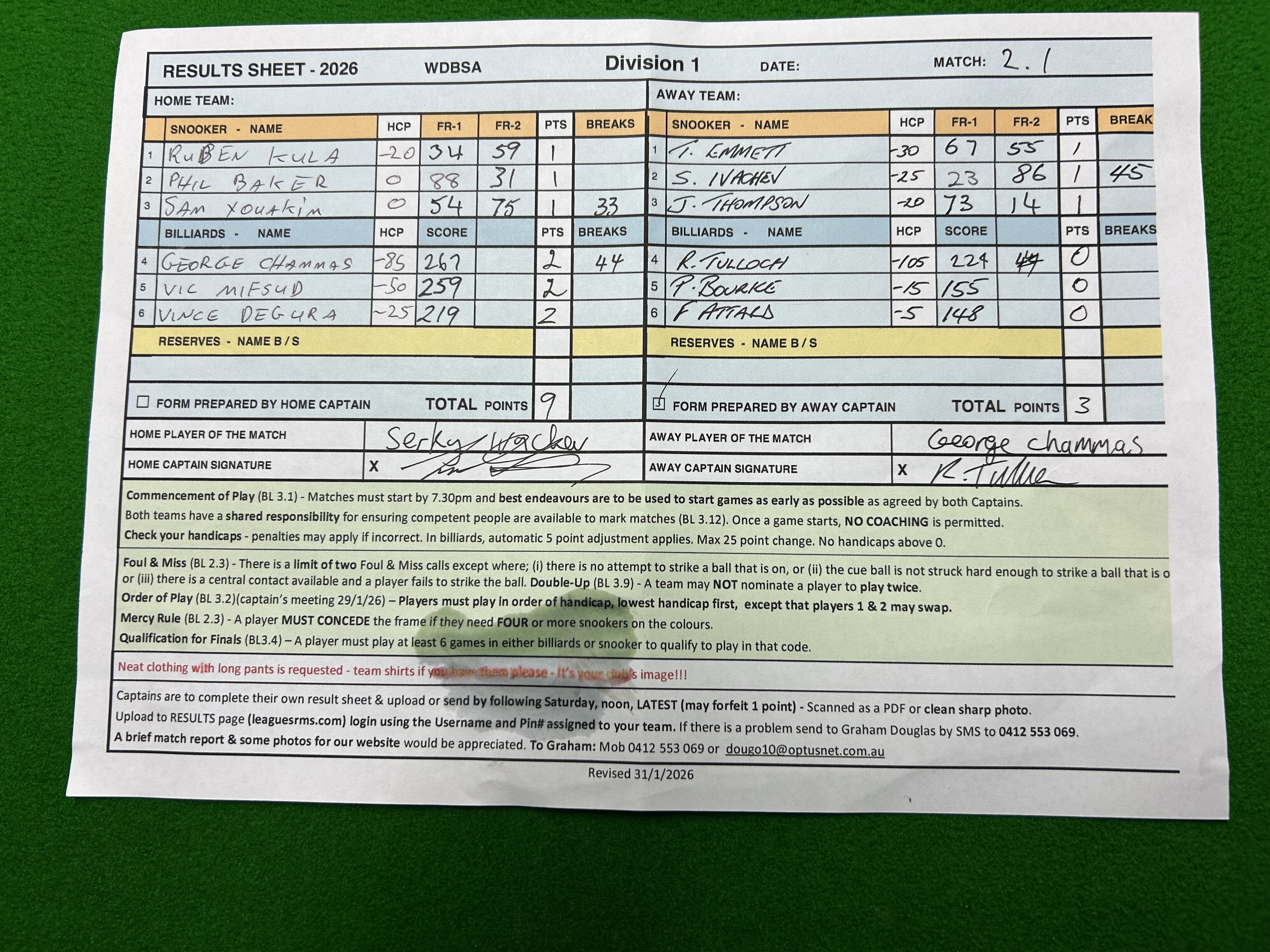 | George Chammas (-85) | Ron Tulloch (-105) | 2026-03-27 09:44:18 | Guildford | ||||||||||
