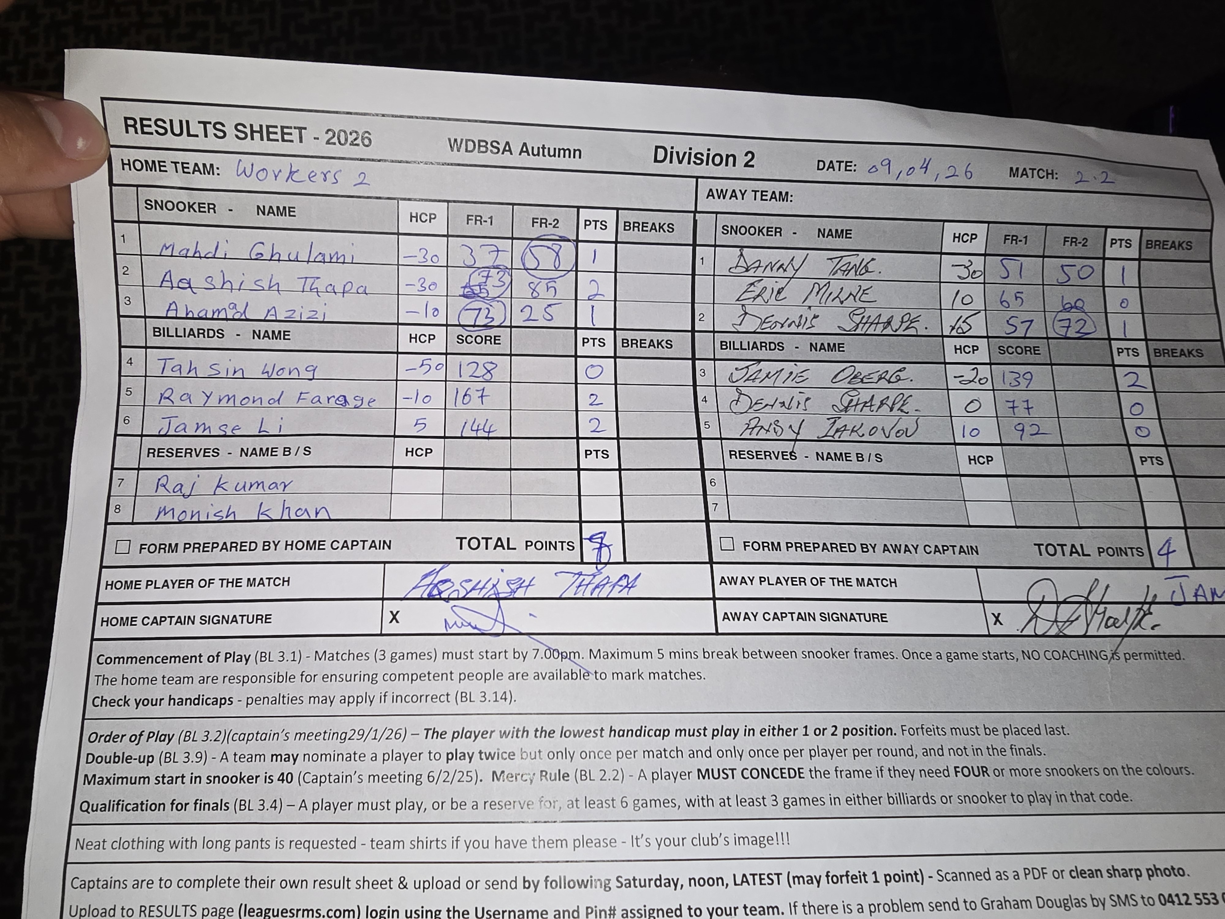 | Ahmad Azizi (-10) | Dennis Sharpe (15) | 2026-04-09 22:32:12 | Workers2 |