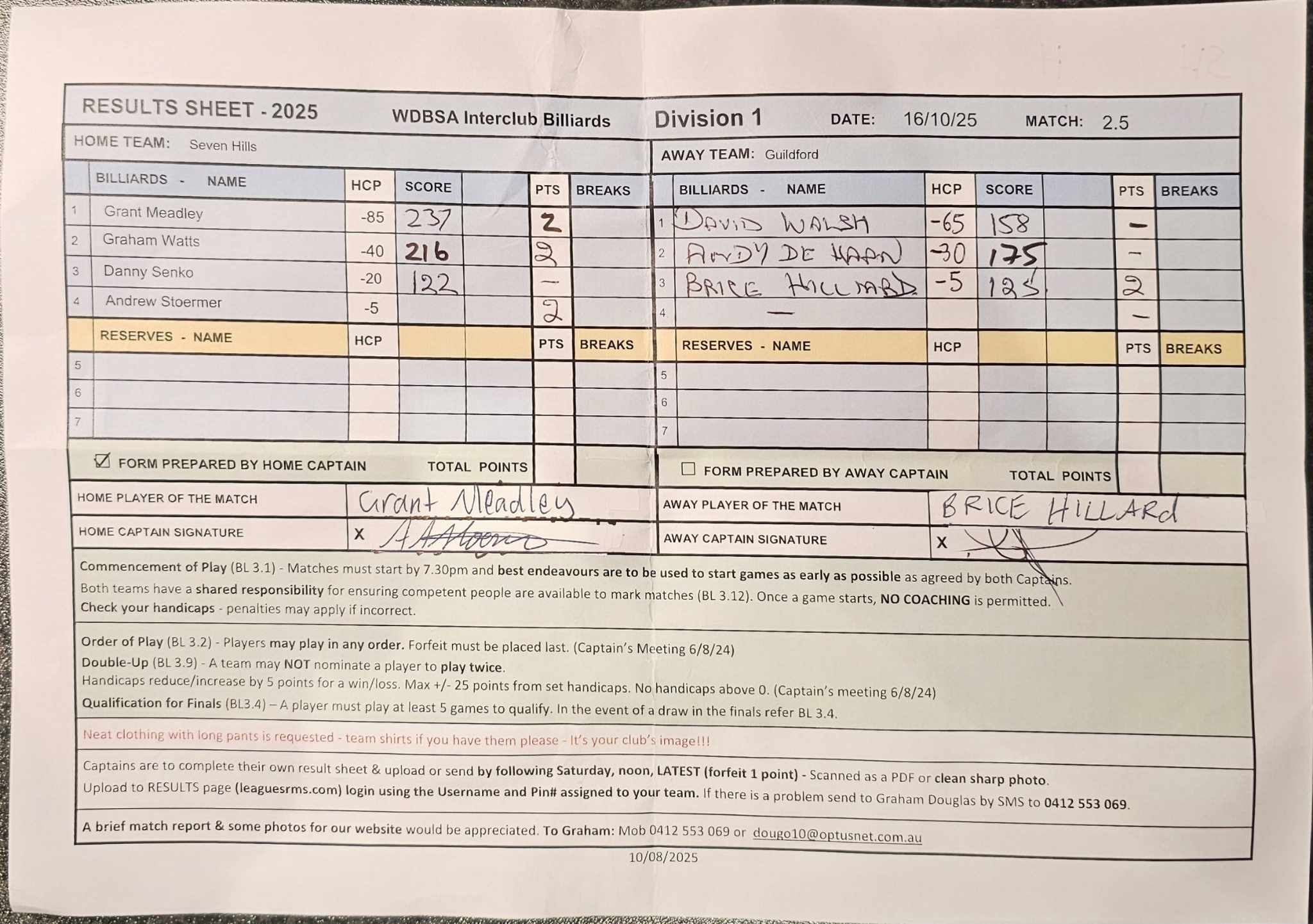 Danny Senko (-20) | Brice Hilliard (-5) | 2025-10-17 15:11:13 | Div1-Seven Hills | ||||||||||